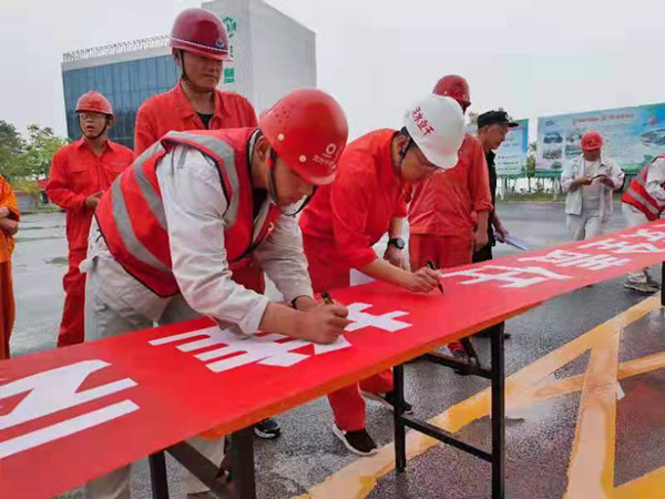 為落實安全責(zé)任、推動安全生產(chǎn),嚴格執(zhí)行全國安全生產(chǎn)專項整治三年行動集中攻堅要求,6月1日,馬村分公司于千業(yè)礦山一期卸料平臺舉行2021年“安全生產(chǎn)月”活動啟動儀式暨宣誓、簽字儀式。  2021年6月是我國的第20個“安全生產(chǎn)月”,今年安全月活動的主題是: 落實安全責(zé)任 推動安全發(fā)展。我們要深入學(xué)習(xí)習(xí)近平總書記關(guān)于安全生產(chǎn)重要論述,全面貫徹落實黨中央、國務(wù)院關(guān)于安全生產(chǎn)重大決策部署和集團、中材礦山關(guān)于安全生產(chǎn)工作要求,以“防風(fēng)險、除隱患、遏事故”為目標,扎實推進安全生產(chǎn)專項整治三年行動集中攻堅。利用“安全生產(chǎn)月”的活動這一契機,通過開展安全生產(chǎn)事故警示教育、安全生產(chǎn)應(yīng)急救援演練、安全教育培訓(xùn)、張貼安全宣傳標語等活動,增強全員安全意識,提升員工安全素質(zhì),確保公司安全生產(chǎn)形勢持續(xù)穩(wěn)定。 此次活動進一步提高各崗位人員對安全工作重要性、艱巨性和長期性的認識,通過安全月的學(xué)習(xí),認真做好當(dāng)前和今后的安全生產(chǎn)工作。充分發(fā)揮現(xiàn)場管理人員的監(jiān)管作用,強化各項安全措施的貫徹落實,及時消除隱患,全面提高安全生產(chǎn)條件,保證分公司安全生產(chǎn)形勢持續(xù)穩(wěn)定。