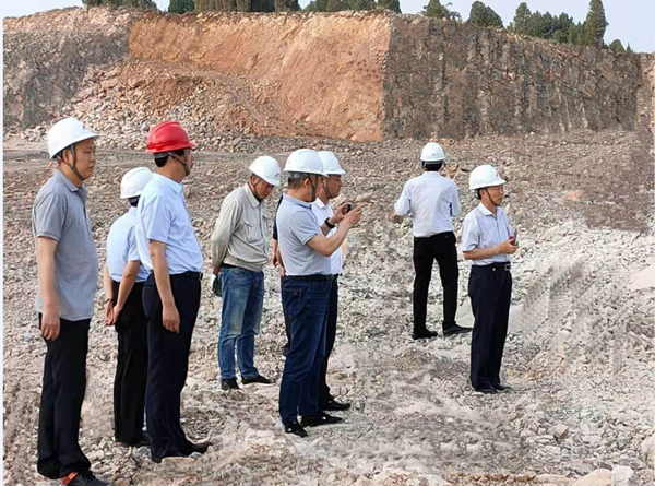 根據(jù)非煤礦山企業(yè)安全生產(chǎn)專項(xiàng)檢查目標(biāo)任務(wù),為深入扎實(shí)推進(jìn)開展非煤礦山安全專項(xiàng)整治,結(jié)合《山東省非煤礦山安全專項(xiàng)整治行動實(shí)施方案》和《臨沂市非煤礦山安全生產(chǎn)專項(xiàng)檢查方案》,2021年 6月2日,臨沂市市局黨組成員李斌、市局督察員夏立新、沂水縣局黨組成員郭磊、礦管科科長王子銘、沂水山水總經(jīng)理董傳輝、兗州中材沂水分公司負(fù)責(zé)人白鳳龍陪同煙臺市局劉德峰、王之躍、姜志興對由兗州中材建設(shè)有限公司總承包的沂水山水寶山坡礦區(qū)開展異地執(zhí)法安全生產(chǎn)專項(xiàng)檢查和安全生產(chǎn)督查。 檢查組采取執(zhí)法人員查驗(yàn)資料、專家現(xiàn)場核查的形式,圍繞企業(yè)安全風(fēng)險分析和安全條件確認(rèn)是否落實(shí)到位,檢查《專項(xiàng)檢查實(shí)施方案》落實(shí)情況,礦區(qū)現(xiàn)場管理、安全警示標(biāo)志設(shè)置、開采臺階高度、邊坡角度、民用爆炸物品使用及設(shè)備、各類安全生產(chǎn)制度、圖紙資料、員工培訓(xùn)等進(jìn)行全面檢查。  寶山坡礦區(qū)+255米施工現(xiàn)場安全督查
