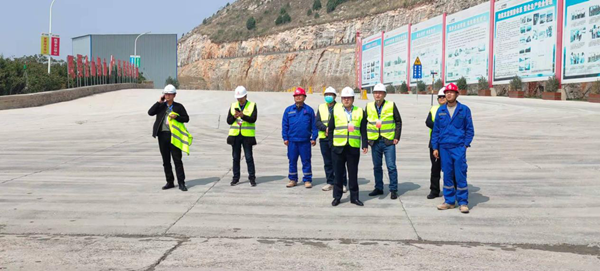 ---山西金圓水泥有限公司考察平陰項(xiàng)目 4月15日上午公司黨委書記、總經(jīng)理柯升、總經(jīng)理助理、經(jīng)營部經(jīng)理尹超、項(xiàng)目經(jīng)理趙立磊陪同山西朔州金圓水泥有限公司設(shè)備副總孫成祥、安全環(huán)保經(jīng)理徐佃峰、太原金圓水泥有限公司礦山部經(jīng)理閻賀來一行蒞臨平陰分公司礦山考察。  考察團(tuán)一行在卸礦平臺觀看礦山建設(shè)宣傳片,分公司經(jīng)理?xiàng)钔⒚鳌⒏苯?jīng)理曾令彬分別從礦山開采施工、安全環(huán)保、設(shè)備運(yùn)行管理及現(xiàn)場形象建設(shè)等方面向考察團(tuán)進(jìn)行工作匯報(bào)。
