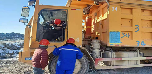 在康經(jīng)理的帶領(lǐng)下,檢查團依次對礦山現(xiàn)場、破碎車間、車輛維修車間進行了仔細排查。在本次檢查之中,發(fā)現(xiàn)了存在的如下若干安全隱患:有個別礦車司機安全帽破損,有的挖掘機、運礦車內(nèi)配置的滅火器損壞,破碎車間二氧化碳瓶未加裝防傾倒裝置,配電室配電柜電路集成板未加防護裝置,維修車間工具擺放雜亂,爬高作業(yè)支架未安裝防滑裝置等安全隱患。