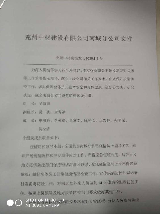 春節(jié)期間,一場(chǎng)突如其來(lái)的新冠病毒肺炎席卷全國(guó),疫情防控形勢(shì)嚴(yán)峻。疫情就是命令,按照上級(jí)黨委要求,做出部署和安排,兗州中材第一時(shí)間成立由總經(jīng)理任組長(zhǎng)的疫情防控領(lǐng)導(dǎo)小組,及時(shí)制定和啟動(dòng)應(yīng)急預(yù)案,各分公司和項(xiàng)目部按照疫情成立了疫情防控組織機(jī)構(gòu),成立了疫情防控青年突擊隊(duì),對(duì)所屬分公司積極推出疫情防控制度與措施,認(rèn)真宣傳,抓好落實(shí),嚴(yán)防死守,阻斷疫情傳播,切實(shí)做好疫情防控和復(fù)工復(fù)產(chǎn)等各項(xiàng)工作,切實(shí)保障員工生命安全和身體健康。針對(duì)當(dāng)前疫情情況,分公司具體通過(guò)以下措施確保安全復(fù)工復(fù)產(chǎn): 一、分公司成立疫情防控領(lǐng)導(dǎo)小組,制定復(fù)工復(fù)產(chǎn)方案,分公司經(jīng)理任組長(zhǎng),領(lǐng)導(dǎo)小組按照當(dāng)?shù)卣?/span>與公司要求,嚴(yán)格落實(shí)疫情期間的消殺管控及登記制度,并與當(dāng)?shù)?/span>政府、業(yè)主加強(qiáng)溝通,將感染風(fēng)險(xiǎn)降至最低。