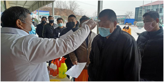 蘭陵分公司配合當(dāng)?shù)卣w溫監(jiān)測(cè) 五、做好返崗復(fù)工人員的安排,設(shè)隔離留觀(guān)室。對(duì)來(lái)自疫情發(fā)生地的員工,勸其留在原居住地,防止疫情擴(kuò)散蔓延;已經(jīng)返工的,要求其自抵達(dá)后自我隔離,在隔離場(chǎng)所觀(guān)察14天。安排單人單間、相對(duì)獨(dú)立房間設(shè)立疫區(qū)返崗人員廠(chǎng)內(nèi)臨時(shí)隔離場(chǎng)所。隔離人員必須每日進(jìn)行體溫測(cè)量,如出現(xiàn)發(fā)熱、咳嗽、乏力等癥狀的,要戴上口罩立即到就近的定點(diǎn)救治醫(yī)院發(fā)熱門(mén)診就診。隔離結(jié)束所有隔離人員必須經(jīng)過(guò)體溫檢測(cè)合格后方可解除隔離。