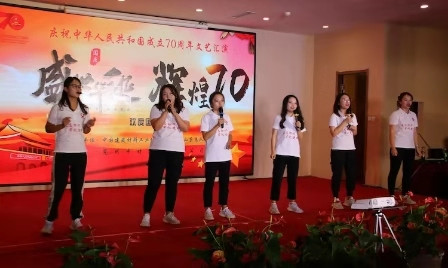 為慶祝新中國成立70周年 ,9月29日下午,由兗州中材和山東地質(zhì)總隊聯(lián)合舉辦的“盛世華誕 輝煌70”國慶文藝匯演隆重舉行。 一首首優(yōu)美的歌聲、一段段好看的舞蹈表達了對祖國母親生日的祝福。一首《國家》,把祖國這70年來的情懷用歌曲的形式表達,祝愿我們祖國的明天會越來越好,家是國,國更是家。一首《映山紅》,那優(yōu)美的旋律、深情的歌詞表達了對紅軍的熱愛和對英雄的崇敬之情。一首《今天是你的生日》表達了對祖國母親深深的熱愛和祝福。本次匯演形式多種多樣,精彩紛呈。包括舞蹈、合唱、獨唱、相聲小品、樂器獨奏等。          通過本次文藝匯演增進了兗州中材和山東地質(zhì)總隊的友誼,展現(xiàn)了“不忘初心、牢記使命”主題教育的新成果,增強國慶的節(jié)日氛圍,更加增強全體職工的愛國之心。 |