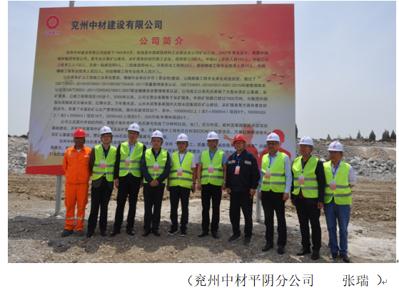5月6日,吉林天池鉬業(yè)有限公司領(lǐng)導(dǎo)在平陰山水水泥有限公司,黨委書(shū)記侯福存、兗州中材建設(shè)有限公司總經(jīng)理柯升、副總經(jīng)理張?zhí)m青的陪同下,蒞臨兗州中材平陰分公司礦山施工現(xiàn)場(chǎng)參觀指導(dǎo)。