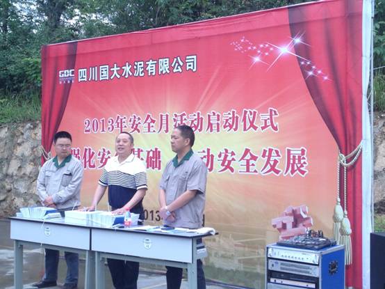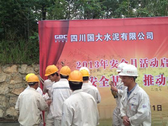 四川國(guó)大水泥舉行安全月啟動(dòng)儀式 6月1日,四川國(guó)大水泥有限公司舉行了以“強(qiáng)化安全基礎(chǔ),推動(dòng)安全發(fā)展”為主題的安全月啟動(dòng)儀式。江油市含增鎮(zhèn)安辦主任唐開文到會(huì)并講話。會(huì)議由國(guó)大副總鐘義主持,兗州中材國(guó)大礦山的全體員工也應(yīng)邀參加。 唐開文在講話中回顧了過(guò)去幾年國(guó)大水泥對(duì)安全生產(chǎn)作出的巨大貢獻(xiàn),他還表示,礦山現(xiàn)場(chǎng)的安全工作已成為江油市乃至綿陽(yáng)市的一個(gè)安全示范亮點(diǎn),這與兗州中材的積極努力也是密不可分。國(guó)大安全經(jīng)理余德權(quán)在對(duì)安全生產(chǎn)諸方面作出重要指示后,也針對(duì)礦山安全施工提出更高的要求,希望兗州中材能將良好的安全工作習(xí)慣保持下去。會(huì)上,給全體員工發(fā)放了安全手冊(cè)。每位員工在安全月宣傳墻上簽名,這將會(huì)議推上了一個(gè)高潮。會(huì)后,員工們均表示:通過(guò)此次啟動(dòng)儀式,使得安全工作更加深入人心。對(duì)于安全生產(chǎn)的重視,時(shí)刻不敢松懈! 杜國(guó)賓