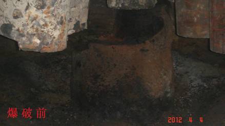 兗州中材建設(shè)有限公司云維項目部 實施石墨電極分解爆破 4月4日,應(yīng)云維乙炔化工有限公司(業(yè)主)要求,我項目部對其廠區(qū)1#電石爐內(nèi)石墨電極成功實施分解爆破。 本次爆破點位于業(yè)主電石車間二層電石爐內(nèi),技術(shù)人員和安全員經(jīng)現(xiàn)場勘查發(fā)現(xiàn):石墨電極為直徑1.2m、高約1.5m的圓柱狀石墨體,從中心呈輻射狀均勻分布12塊約1cm厚鋼板。三個電極呈“品”字狀分布在一個直徑約7~8米的幾乎密閉的鋼制反應(yīng)爐內(nèi)(有洞口)。爆前充分勘察了爆區(qū)周圍的實際情況,結(jié)合從網(wǎng)絡(luò)上搜集的對石墨電極的性能分析和以往的爆破經(jīng)驗,選用合適的爆破器材,擬定了幾種爆破方案。充分分析爆破方案的可行性后,選擇其中可行性較高的兩種方案進行了試爆,結(jié)合兩次試爆效果,經(jīng)調(diào)整爆破參數(shù)后,最終成功拆除。 本次爆破對僅隔約10米遠、正在生產(chǎn)的2#爐和庫房未產(chǎn)生任何影響。 這次爆破工作雖小,但我們本著謹慎、科學(xué)的態(tài)度對待。從爆破參數(shù)的選擇到安全警戒都認真小心,取得了預(yù)想的效果。 通過這次爆破,積累了對巖石以外材料的爆破經(jīng)驗,也增加了我項目部尤其是年輕人工作技能。也到了業(yè)主的認可。 孟永旺