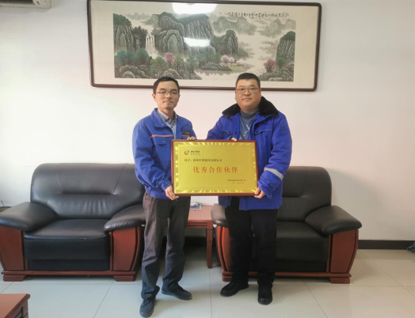 11月25日,為表彰兗州中材神頭分公司對朔州金圓水泥有限公司超額完成年度生產(chǎn)任務(wù)做出的積極貢獻,金圓水泥副總經(jīng)理王魁向兗州中材建設(shè)有限公司神頭分公司頒發(fā)了“優(yōu)秀合作伙伴”的榮譽獎牌。