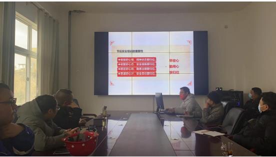 在礦山現(xiàn)場召開到崗一線員工“節(jié)后復(fù)工收心會”,趕走“節(jié)后綜合癥”,調(diào)整心態(tài),全身心回歸工作,增強節(jié)后安全意識。