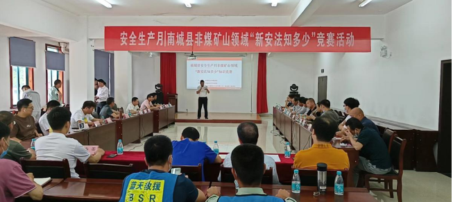 今年6月是全國第21個安全生產(chǎn)月,安全生產(chǎn)月的主題是“遵守安全生產(chǎn)法,當(dāng)好第一責(zé)任人”,今天也是全國安全宣傳日,南城縣安全生產(chǎn)委員會礦山安全專業(yè)委員會決定在江西南城南方水泥有限公司舉辦南城縣非煤礦山“新安法,知多少”知識競賽活動。 參賽隊伍:(1號隊)南城縣新泰石材廠、(2號隊)南城縣南景東風(fēng)礦業(yè)有限公司、(3號隊)南城縣富耀瓷土有限公司、(4號隊)南城縣青玉礦業(yè)有限公司、(5號隊)江西煜晟礦業(yè)有限公司、(6號隊)兗州中材建設(shè)有限公司南城分公司、(7號隊)江西昌和礦業(yè)有限公司。