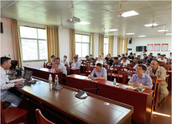 現(xiàn)場觀摩結束后,全體人員來到愛民鄉(xiāng)政府,分公司副經理肖波、夏曉陽就礦山爆破安全、邊坡控制爆破技術及現(xiàn)場安全施工管理等方面對全體參會人員進行培訓。
