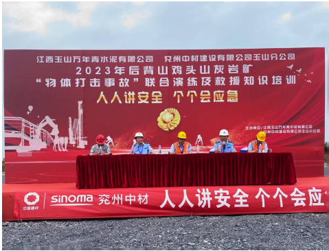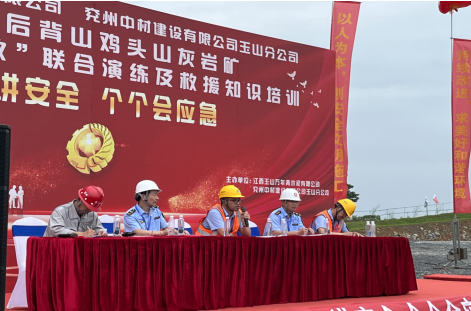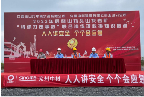 為深入宣貫黨的二十大精神和習近平總書記關于安全生產(chǎn)重要論述,進一步樹牢“以人為本、安全發(fā)展”的安全生產(chǎn)管理理念,貫徹“安全第一、預防為主、綜合治理”的安全生產(chǎn)方針,強化非煤礦山事故應急救援管理工作和應急救援隊伍建設,切實提高分公司應對礦山突發(fā)事故的聯(lián)合應急救援綜合能力,6月17日,兗州中材玉山分公司聯(lián)合江西玉山萬年青水泥有限公司、玉山縣藍天救援隊、玉山縣人民醫(yī)院等舉辦2023年“物體打擊事故”聯(lián)合演練及救援知識培訓活動。玉山縣應急管理局局長吳高峰、玉山萬年青水泥有限公司總經(jīng)理李躍華等出席本次活動并致辭。