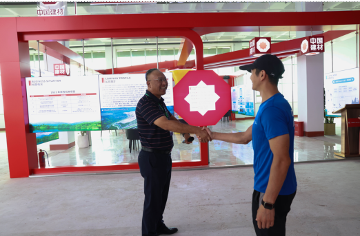 在兗州中材展廳,劉占中對企業(yè)發(fā)展歷程、經營情況、品牌建設以及在礦山生產管理上取得的成績進行了詳細的介紹,邢傲偉對兗州中材的發(fā)展狀況以及在積極承擔社會責任等方面給予了高度的評價。劉占中表示:取得奧運冠軍是中國的驕傲,走出國門為國爭光是祖國以及全國人民的驕傲;作為央企,我們心中有責任,肩上有使命,將會以奧運冠軍為榜樣,以最大的誠信,盡最大的努力走智慧開采之路,將綠色環(huán)保的石材礦山呈現在萊州市人民的眼前。