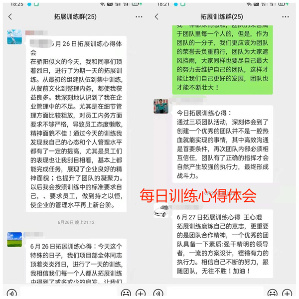 2021年6月26日為迎接中國共產(chǎn)黨成立100周年同時也為了提高員工們的個人素質(zhì)與能力,提升企業(yè)管理水平;兗州中材建設(shè)有限公司白坪分公司開展了為期三天的拓展訓(xùn)練,成立了兗州中材建設(shè)有限公司白坪分公司拓展訓(xùn)練特訓(xùn)營,并邀請中奧企業(yè)管理咨詢有限公司進(jìn)行相關(guān)工作的指導(dǎo),由尖兵教練擔(dān)任特訓(xùn)營教官。 參與此次訓(xùn)練的人員:兗州中材建設(shè)有限公司白坪分公司全體員工。 訓(xùn)練時間:2021年6月26日至6月28日。 此次拓展訓(xùn)練的主要內(nèi)容包括以下三大部分: 一、軍事訓(xùn)練 特訓(xùn)營的第一課便是軍事訓(xùn)練,從列隊到站軍姿,再到稍息立正、跨立、停止間轉(zhuǎn)法,再到最后的齊步行進(jìn)與立定以及跑步行進(jìn)與立定,每一個動作重復(fù)數(shù)十次甚至上百次。 此次訓(xùn)練恰逢中國共產(chǎn)黨成立100周年,軍事訓(xùn)練讓全體人員體會到了我們今天的幸福生活是來之不易的,是無數(shù)革命先烈們拋頭顱、灑熱血才換來的。與先烈們相比,我們訓(xùn)練時承受的這一點(diǎn)點(diǎn)辛苦不值一提。通過軍事訓(xùn)練不僅鍛煉了我們的身體,而且磨煉了我們的意志與心性,同時也提升了我們彼此間的默契與配合程度。