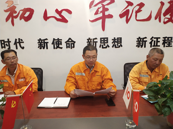 按上級(jí)黨委統(tǒng)一部署,寧陽項(xiàng)目部于9月23日晚召開全體員工結(jié)合中材礦山劉書記講話精神,開展“不忘初心,牢記使命”主題教育活動(dòng)。 會(huì)上,劉經(jīng)理首先帶領(lǐng)全體員工認(rèn)真學(xué)習(xí)《在中材礦山建設(shè)有限公司開展“不忘初心,牢記使命”主題教育部署會(huì)上的講話》。全體員工分別針對(duì)“不忘初心,牢記使命”主題教育活動(dòng)展開發(fā)言討論。最后,根據(jù)《在中材礦山建設(shè)有限公司開展“不忘初心,牢記使命”主題教育部署會(huì)上的講話》會(huì)議精神,劉經(jīng)理呼吁全體員工要積極努力地向黨靠攏,今后更加緊密團(tuán)結(jié)在以習(xí)近平同志為核心的黨中央周圍,高舉習(xí)近平新時(shí)代中國(guó)特色社會(huì)主義思想偉大旗幟,扎實(shí)做好“不忘初心,牢記使命”主題教育工作,為全面完成集團(tuán)和股份公司下達(dá)的各項(xiàng)經(jīng)濟(jì)指標(biāo)而努力奮斗,以優(yōu)異的成績(jī)迎接新中國(guó)成立70周年   |