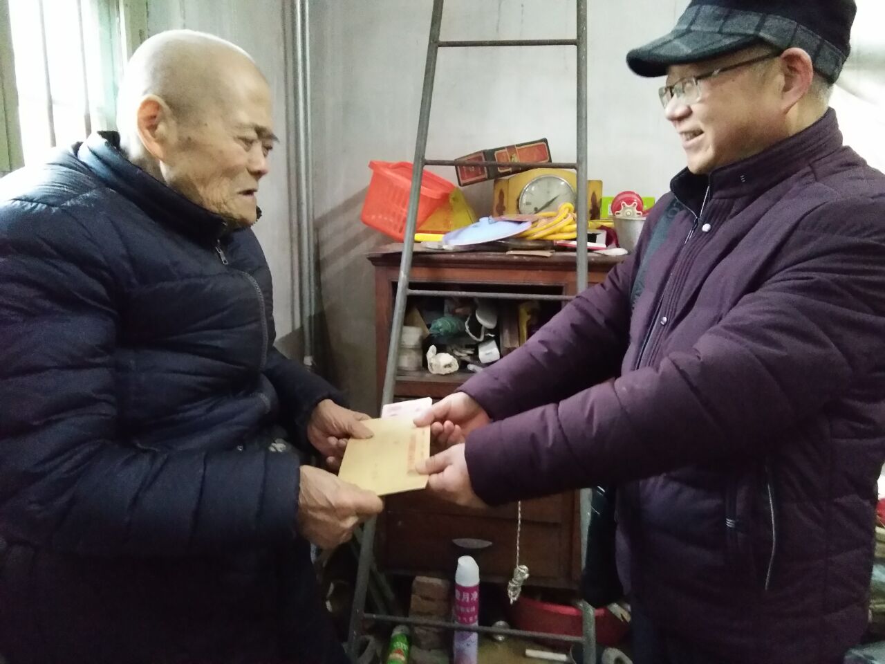 2018年春節(jié)期間走訪慰問活動記實(shí) 2018年2月2日下午,天氣晴朗,寒風(fēng)勁吹,兗州中材建設(shè)有限公司黨群部主任姜智彥和共產(chǎn)黨員郭建喜兩人,代表兗州區(qū)黨委、鼓樓街道黨工委、兗州中材建設(shè)有限公司黨委到退休黨員金寶銀家走訪慰問。聽到敲門聲,金寶銀老工人問:誰呀!“黨組織派我們看你來了”!我們回答道。金寶銀老工人摸到門把,打開門,激動地說:“謝謝黨組織、謝謝領(lǐng)導(dǎo)來看我,我可高興啦!”金寶銀老工人今年85歲高齡了,常年疾病在身,生活靠女兒照顧。當(dāng)我們把500元慰問金交給他時(shí),他表示:我不困難,我不要,我不給黨添麻煩。新春佳節(jié)快到了,這是黨組織對您的一點(diǎn)關(guān)懷,請您老人家收下吧!在我們的一再勸說下,金寶銀老工人慢慢收下慰問金,感動地滿眼淚花! 兗州中材建設(shè)有限公司黨群部 |