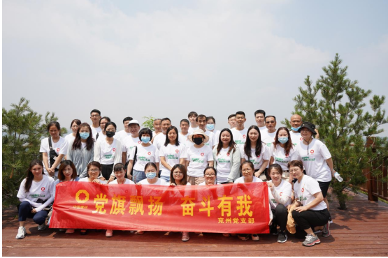 在觀景臺,全體人員面向黨旗開展了“黨旗飄揚,奮斗有我”的表白活動,在黨旗下做出“堅定理想信念,牢記初心使命;聽黨話、感黨恩、永遠跟黨走”的莊嚴承諾。