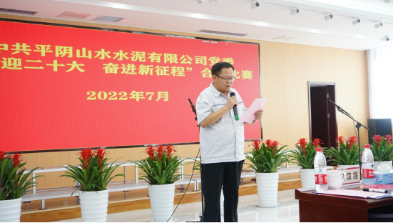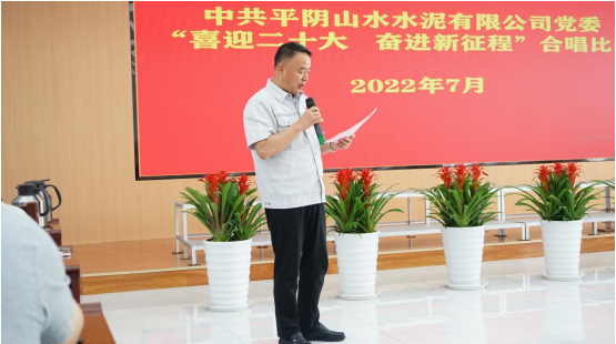 今年是偉大的中國共產(chǎn)黨建黨101周年華誕,為慶祝黨的百年華誕中共平陰山水水泥有限公司黨委組織開展“喜迎二十大 奮斗新征程”合唱比賽。 7月8日下午15:30分,隨著歡快的《迎賓進(jìn)行曲》的響起,參加合唱比賽的12位評(píng)委和5支代表隊(duì)依次進(jìn)場。 本次比賽共分為:行政銷售支部代表隊(duì)、塑編支部代表隊(duì)、生產(chǎn)一支部代表隊(duì)、生產(chǎn)二支部代表隊(duì)和兗州中材平陰分公司與礦管辦代表隊(duì)。 15:50分活動(dòng)正式開始,平陰山水黨委書記侯福存發(fā)表主旨講話:今年是建黨101周年。100多年來,我黨團(tuán)結(jié)帶領(lǐng)全國各族人民自強(qiáng)不息、拼搏進(jìn)取,戰(zhàn)勝艱難險(xiǎn)阻,取得了舉世矚目的輝煌成就,帶領(lǐng)我們昂首闊步邁向偉大復(fù)興。今天,我們隆重集會(huì),用歌聲頌揚(yáng)黨的光輝歷史,緬懷黨的豐功偉績,向黨的101歲華誕獻(xiàn)禮,向黨的二十大獻(xiàn)禮。公司黨委舉辦本次合唱大賽,既是豐富黨建工作形式、促進(jìn)黨建和公司中心工作高度融合的重要舉措,也希望通過比賽,進(jìn)一步增強(qiáng)黨群、干群凝聚力和向心力,激勵(lì)全體干部職工堅(jiān)定信念、迎難而上,在“百日趕超”勞動(dòng)競賽中繼續(xù)立足崗位、攻堅(jiān)克難,全力沖刺“大趕超”任務(wù)目標(biāo),為公司項(xiàng)目建設(shè)和高質(zhì)量發(fā)展貢獻(xiàn)更大力量。 最后,侯書記宣布合唱比賽開始。